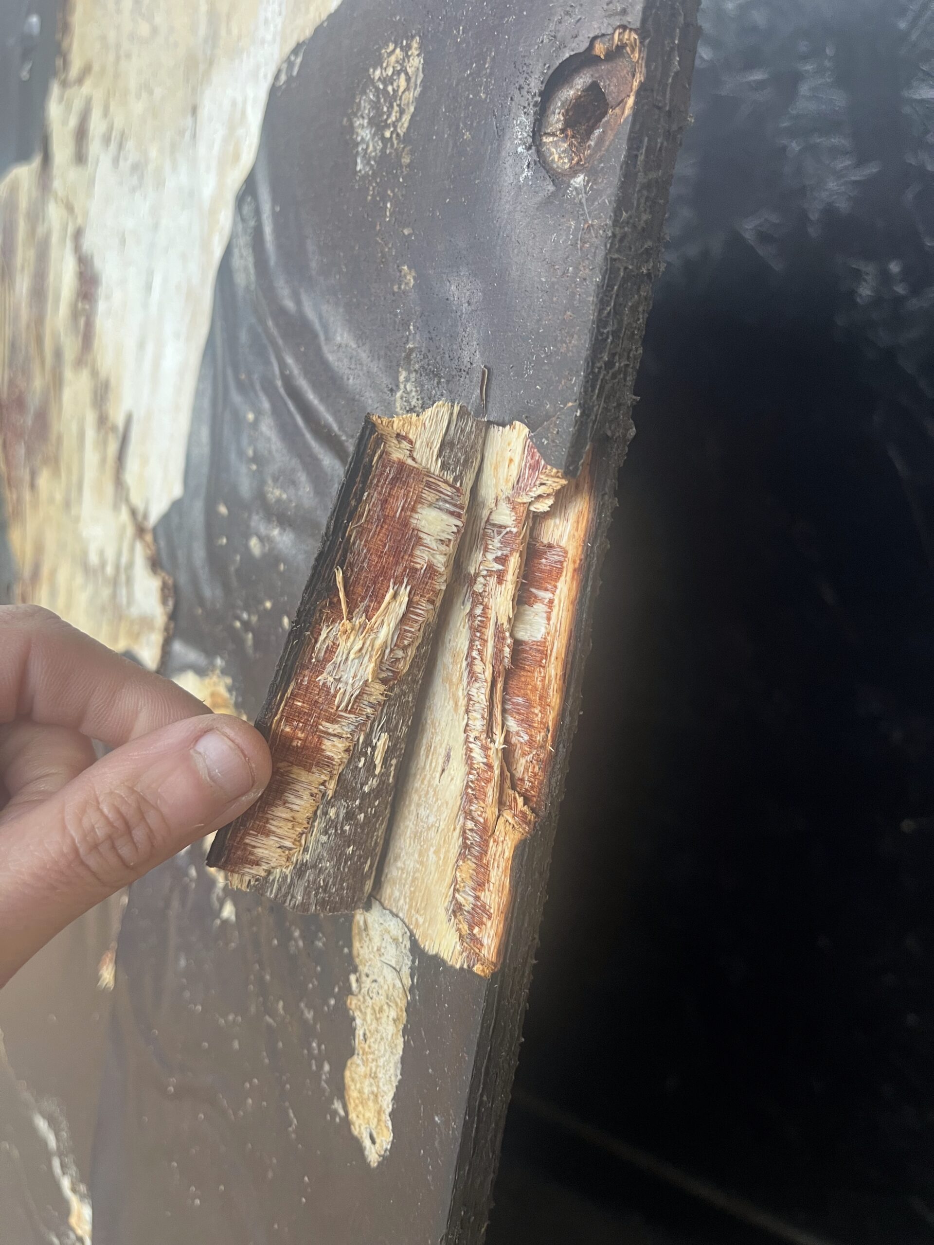 Crumbling wood when probed with a tool